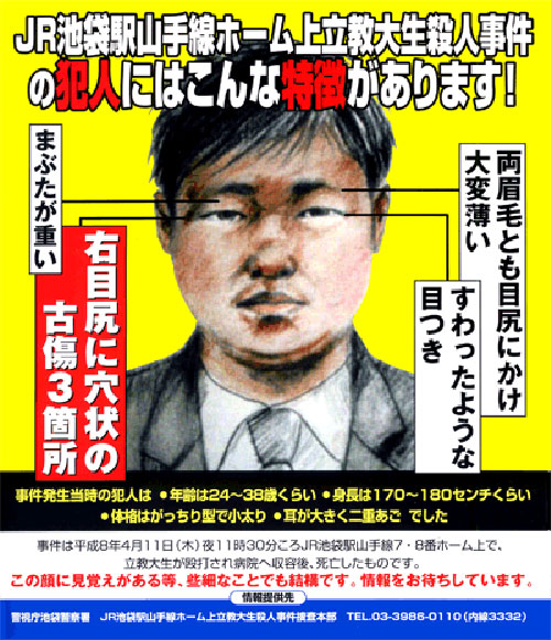 犯人は上野方面行きの山手線に乗り込み、日暮里駅までの目撃証言はあるが、その後の足取りは不明である。