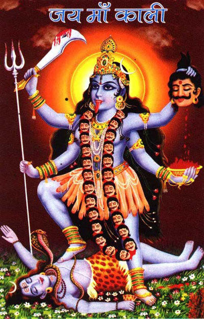 カーリーは黒い肌で好戦的で悪魔を皆殺しにした後で興奮してダンスしてたら地球が崩壊しそうになったからシヴァが下敷きになって止めた