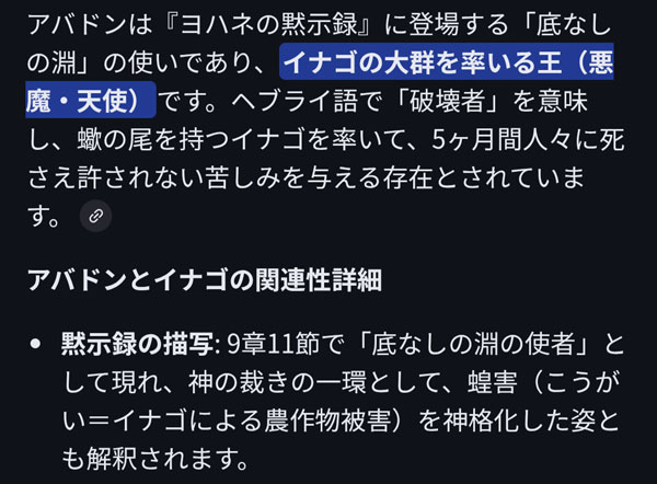 イナゴの群れだったらアバドン来たのに