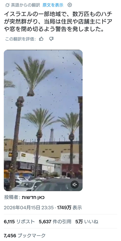 イスラエル南部を大規模なハチの群れが襲撃しており、