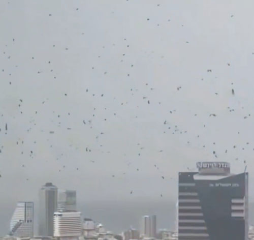 イスラエルのテルアビブ上空に、文字通り「空を黒く染め上げる」ほどの無数のカラスの大群が飛来したのだ。