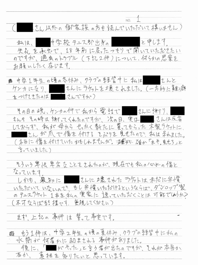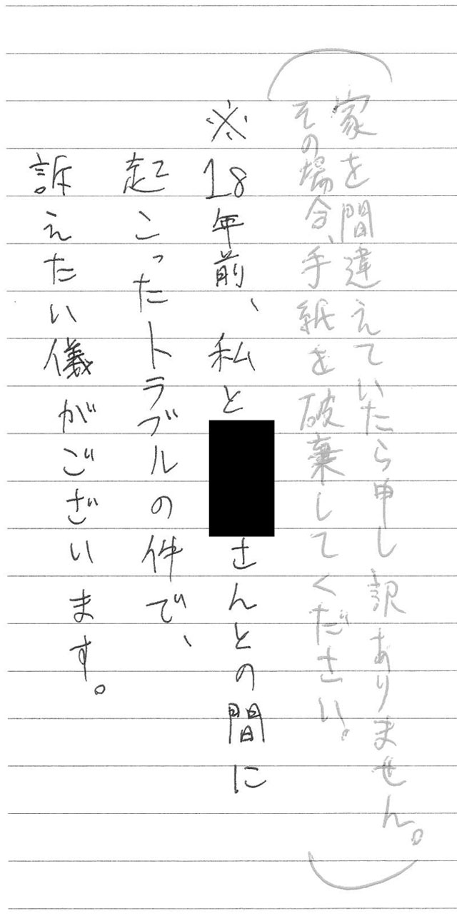 >>18年前、私と△△さんとの間に起こったトラブルの件で、