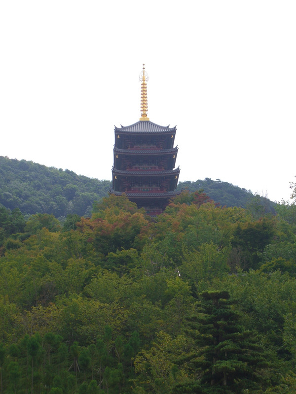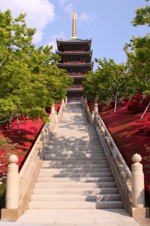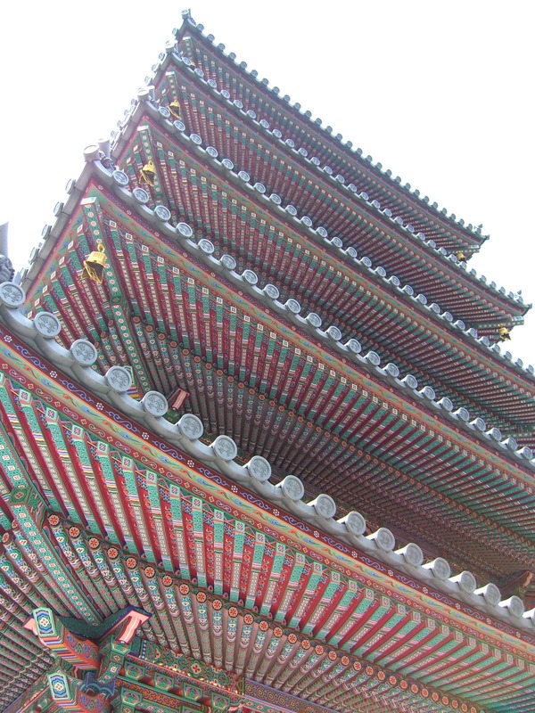 五重塔遠景。極彩色作りで、韓国だかの人間国宝の作らしい