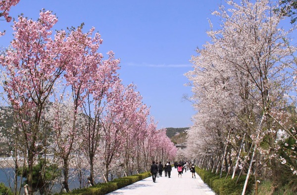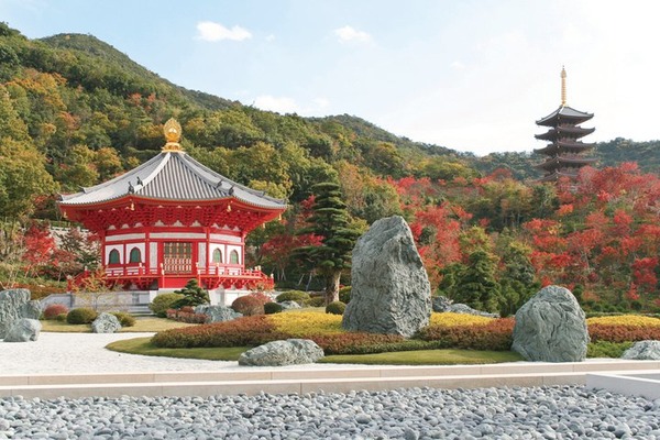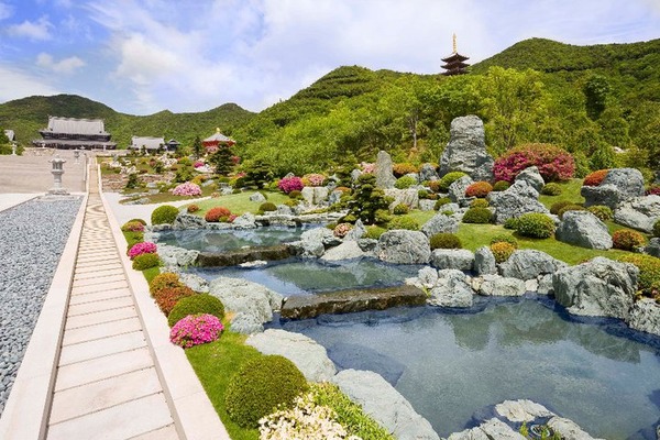 総敷地面積45万坪。工期7年間を要し、延べ350万人の力を結集したとある。場所は兵庫県加東市、源義経ゆかりの地、三草山。
