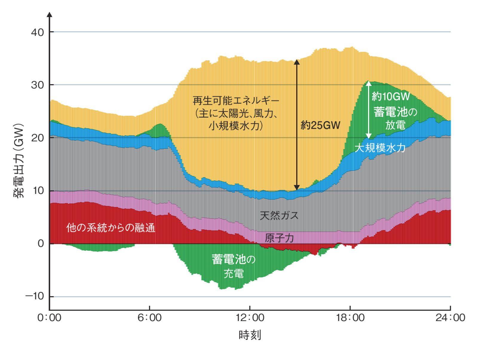 今年のカリフォルニア州の電力系統のある一日や