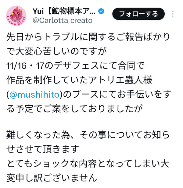 — アトリエ蟲人@オオミズアオLOVE💖 (@mushihito) November 15, 2024