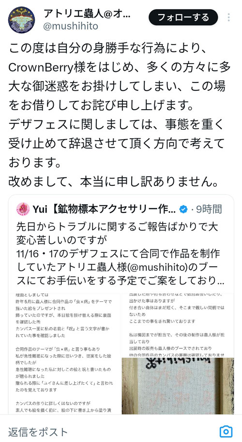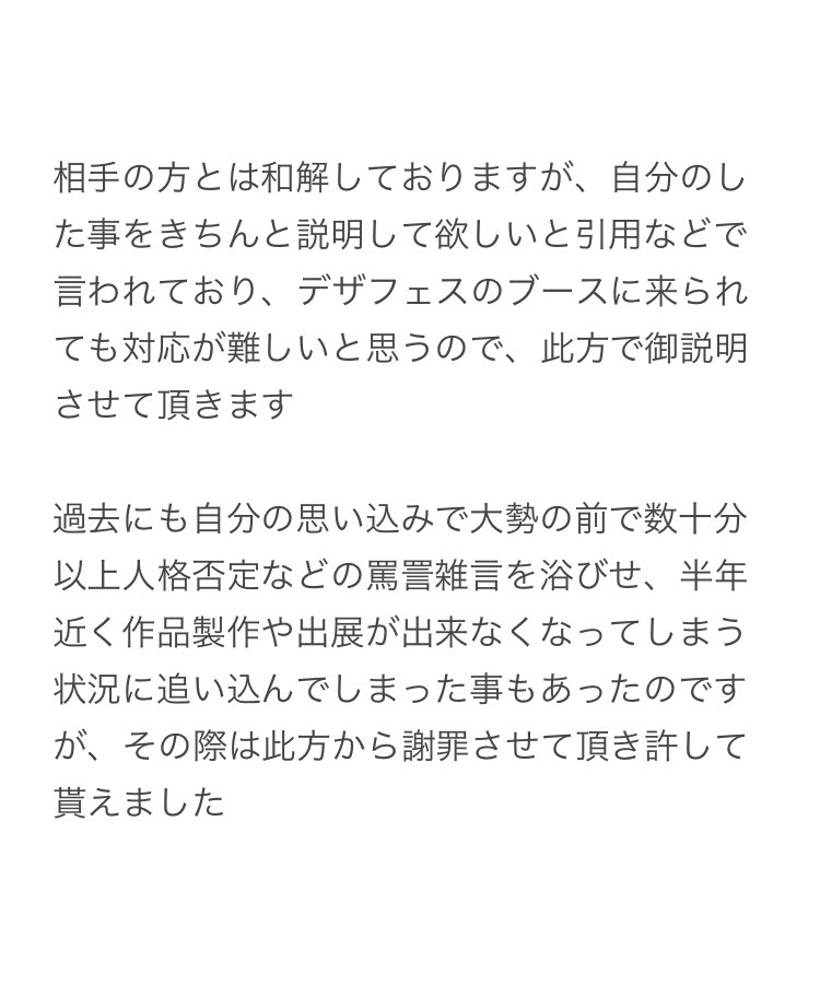 沢山の方のお陰でだいぶ落ち着いて来ましたが、炎上の件に関しまして御質問が幾つか御座いましたので、デザフェス前夜でありますが一読して頂けますと幸いです🙇♂️