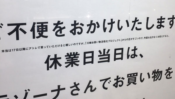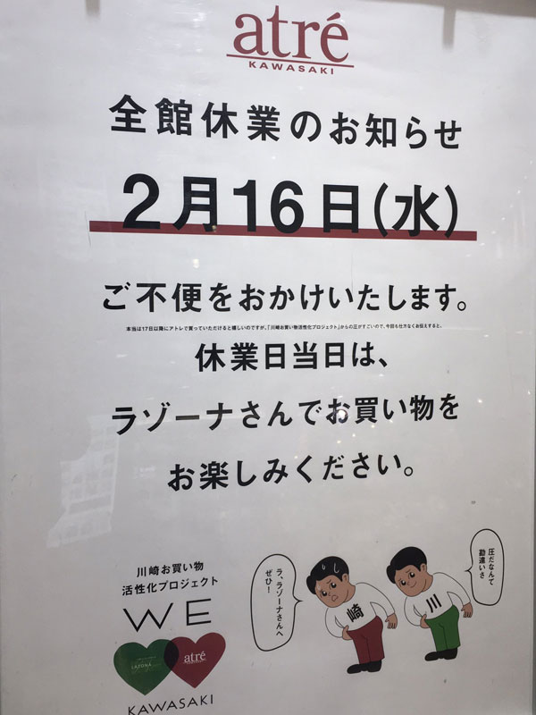川崎駅恒例のラゾーナとアトレのアレ、今回は平和と見せかけて極小フォントで罵り合ってるの笑う