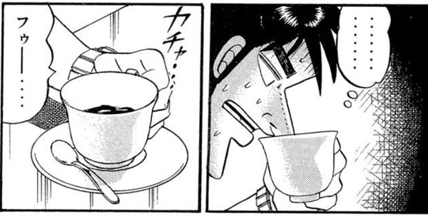 1位 コーヒーを飲もうとするも鼻のせいでカップに口が届かず断念するカイジ