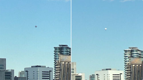 この記事に書かれている模様はよく見えなかった。自分はUFOも信じていないので、球体のアルミ風船かなと納得しようと思ったが風の影響も受けず、同じ高さを一直線に飛行していたので不思議だった。(確かそこまで風も強くなかったし)ちなみに愛知県名古屋市の西側の方です。
