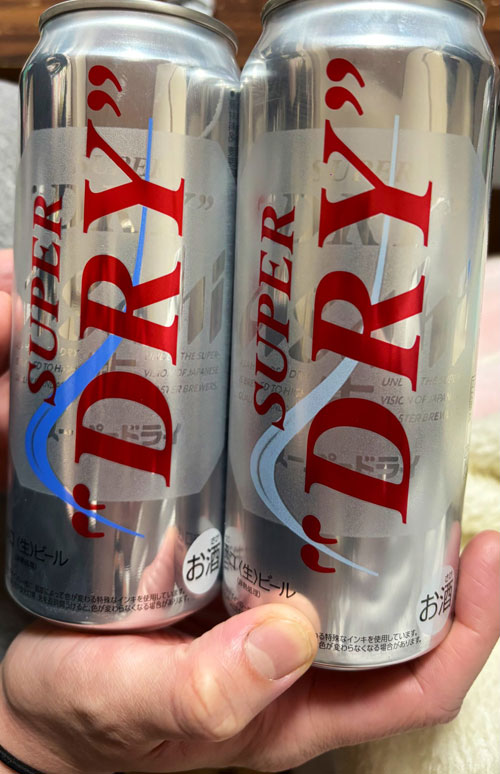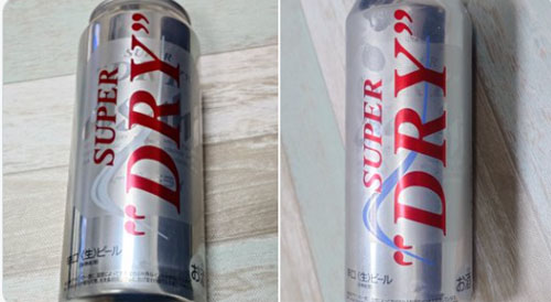 最近のスーパードライはキンキンに冷えて美味しい状態になると真ん中の白い模様が青くなります。
