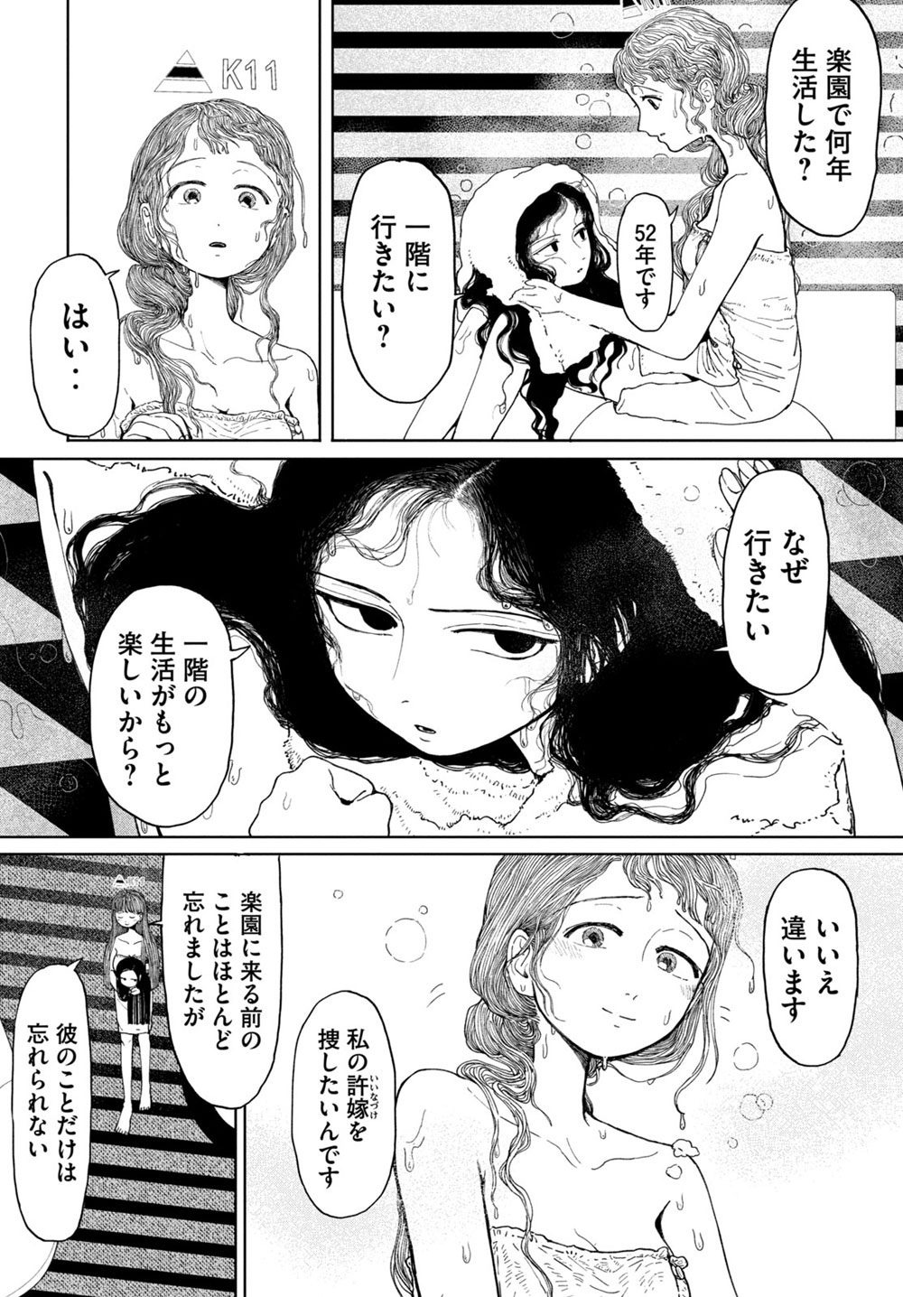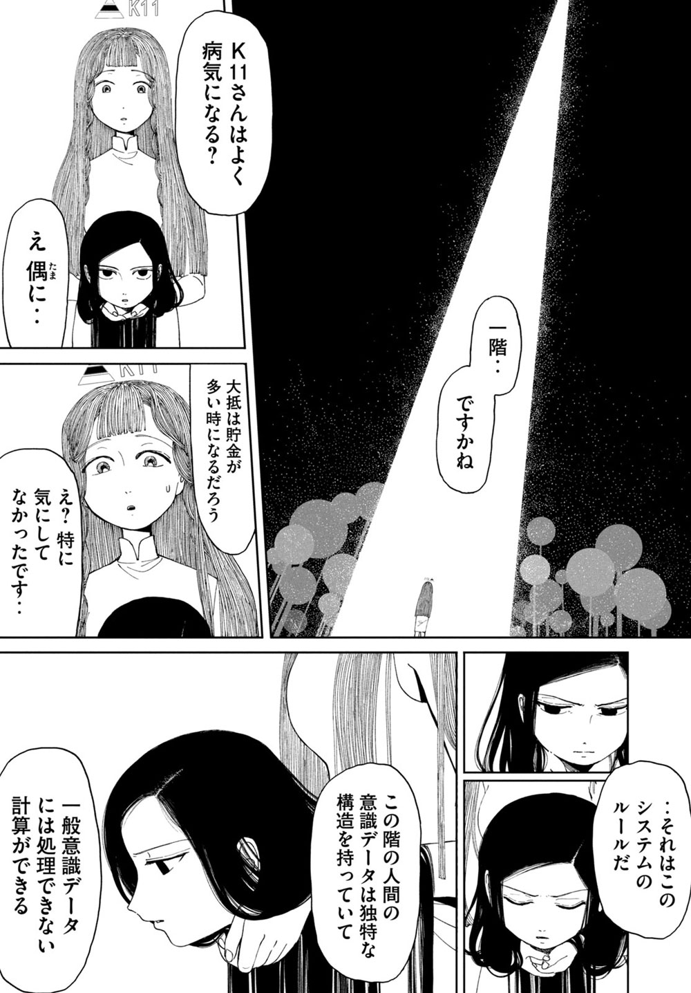 単純にK11さんの許嫁はもう経年劣化で3階で演算装置になってる伏線なだけの気もするけど、結構気になる。