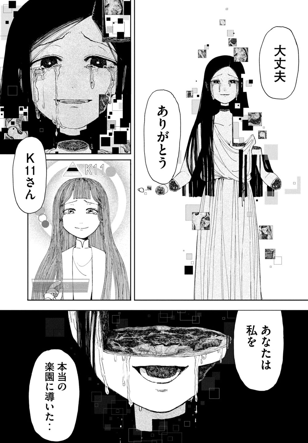 K11さんの死因が老衰で、遺体がキレイな状態で葬式が開かれるぐらい大団円の最期だったおばあちゃんって事を考えると世話やきなのに説得力があるけど、善人だったであろう背景が想像できるからこそ、救いのなさが更に加速する…