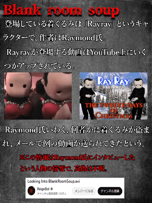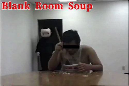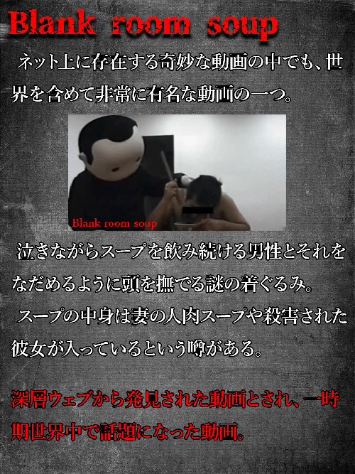 白いシャツの男が泣きながら謎のスープを食べ続け、背後から奇妙な着ぐるみを着た何者かが、それをなだめるように頭を撫でる。ひたすら奇妙で不気味な動画。