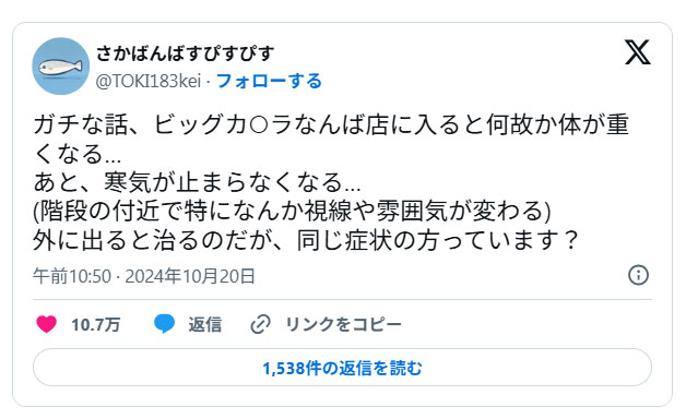 SNSで「ビッグカメラなんば店に入ると何故か体が重くなる。同じ人いませんか?」と話題に