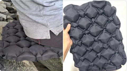 ❺長時間移動やディズニーの待ちでお尻の治安まもってくれるこれ…。90gと軽量だし折りたたむと超コンパクトになるから持ち運びしやすい🥺空気の出し入れもサッとできてオススメ!!